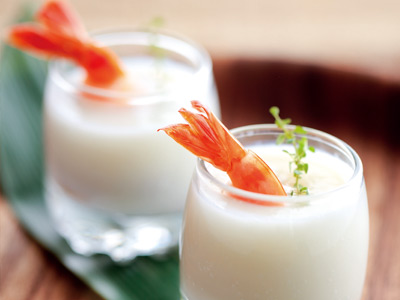 Lay the shrimps and scallops evenly into the bowls. Pour in the egg mixture.