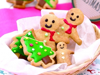 Roll out the chilled dough. Cut out gingerbread man shapes with a cookie cutter and transfer to a parchment-lined baking sheet.