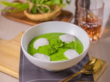 加入忌廉、牛奶並調味,稍微加熱,攪拌至起泡沫。倒進咖啡杯裏。