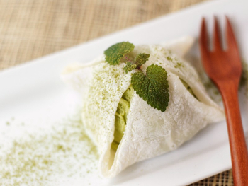 糯米粉加糖、水、椰奶、菜油拌匀,再加入抹茶粉拌匀。