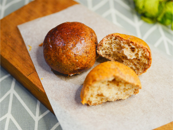 面包体积虽小,但结实有弹性,1人吃2个饱肚感十足。涂牛油、花生酱吃、或夹入菜、牛油果、汉堡扒等配料同吃俱佳。喜欢的话可添加1-2匙黑芝麻粉、亚麻子粉或奇亚子到步骤1,增添营养与风味。预先量好干材料份量,放入小瓶储存,想吃时只需取一瓶出来拌入湿材料,焗1小时便有新鲜的面包吃。